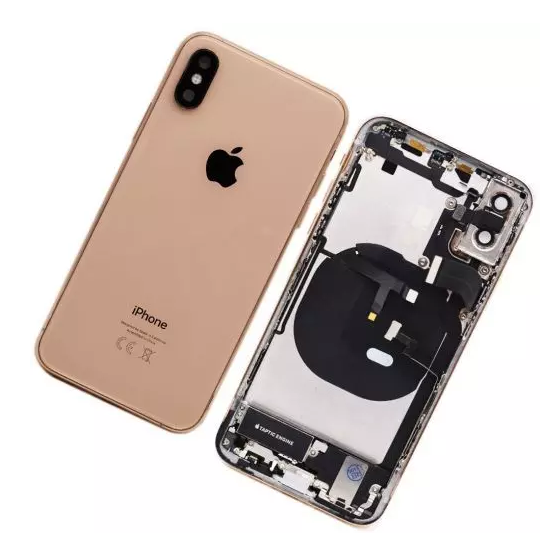 Repair the broken back glass of iPhone Xs with a complete rear housing door assembly.